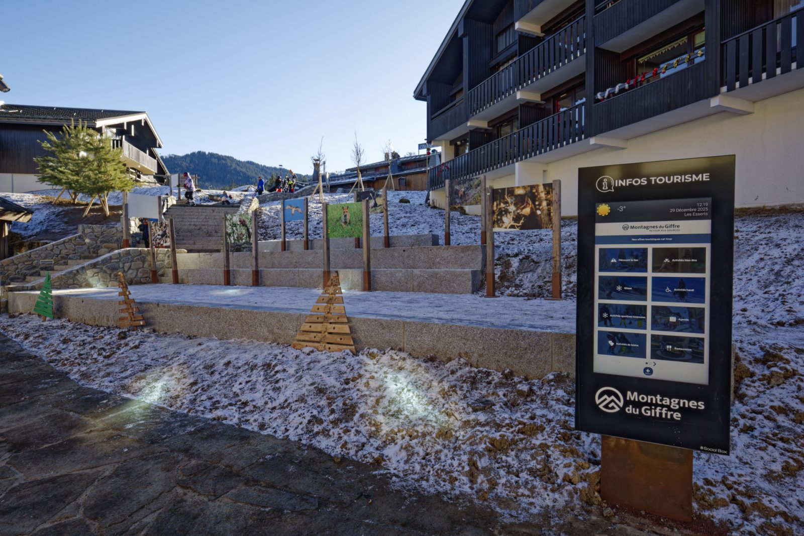 • La majorité de l'exposition est visible depuis l'allée du Forum qui est goudronnée. Il est possible de vous déposer sous le clocher et ensuite d'aller se garer dans la rue qui traverse la station sur les emplacements réservés.