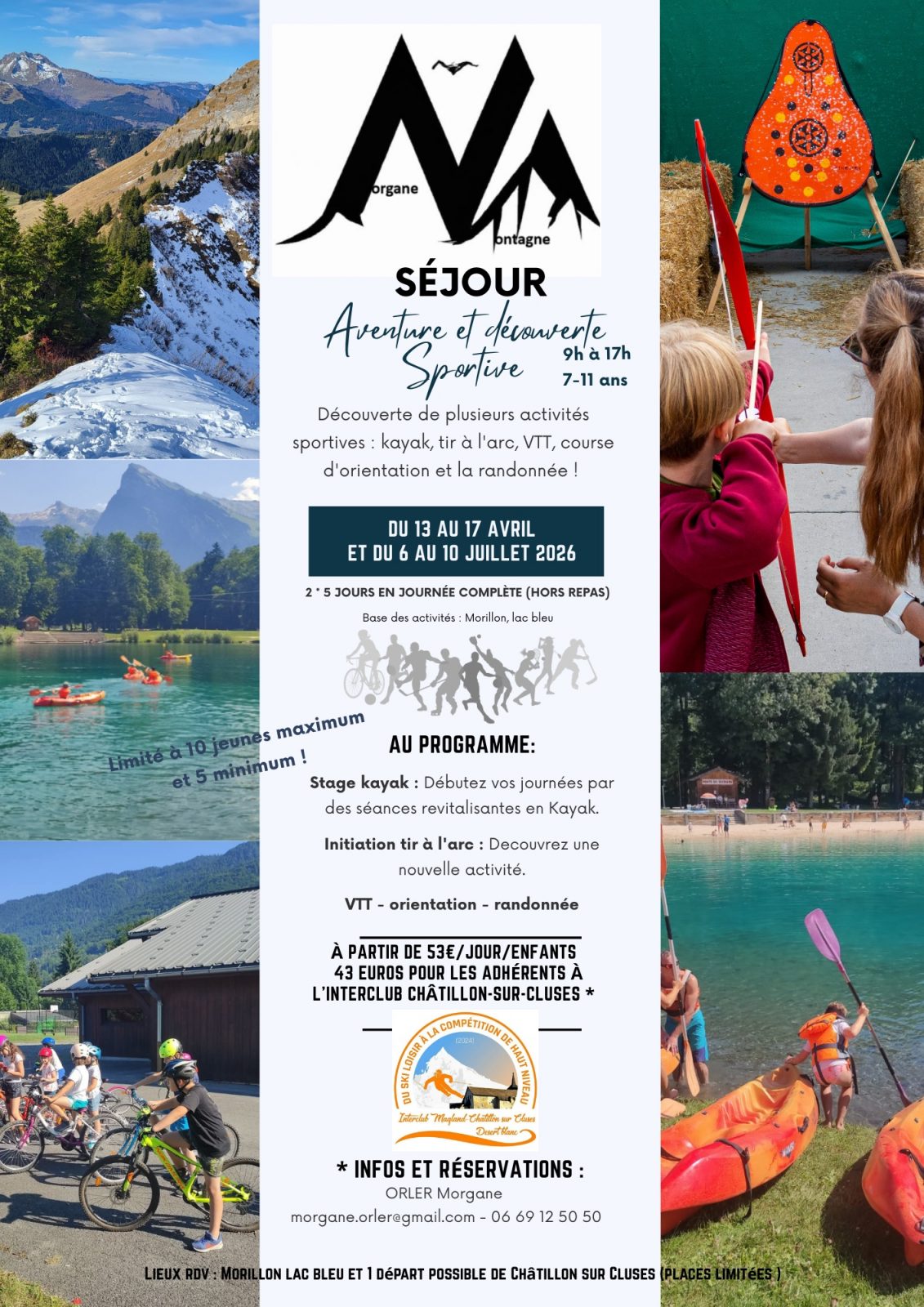 53€ par jour et par enfant. 43€ pour les adhérents à l'interclub Châtillon Sur Cluses |
