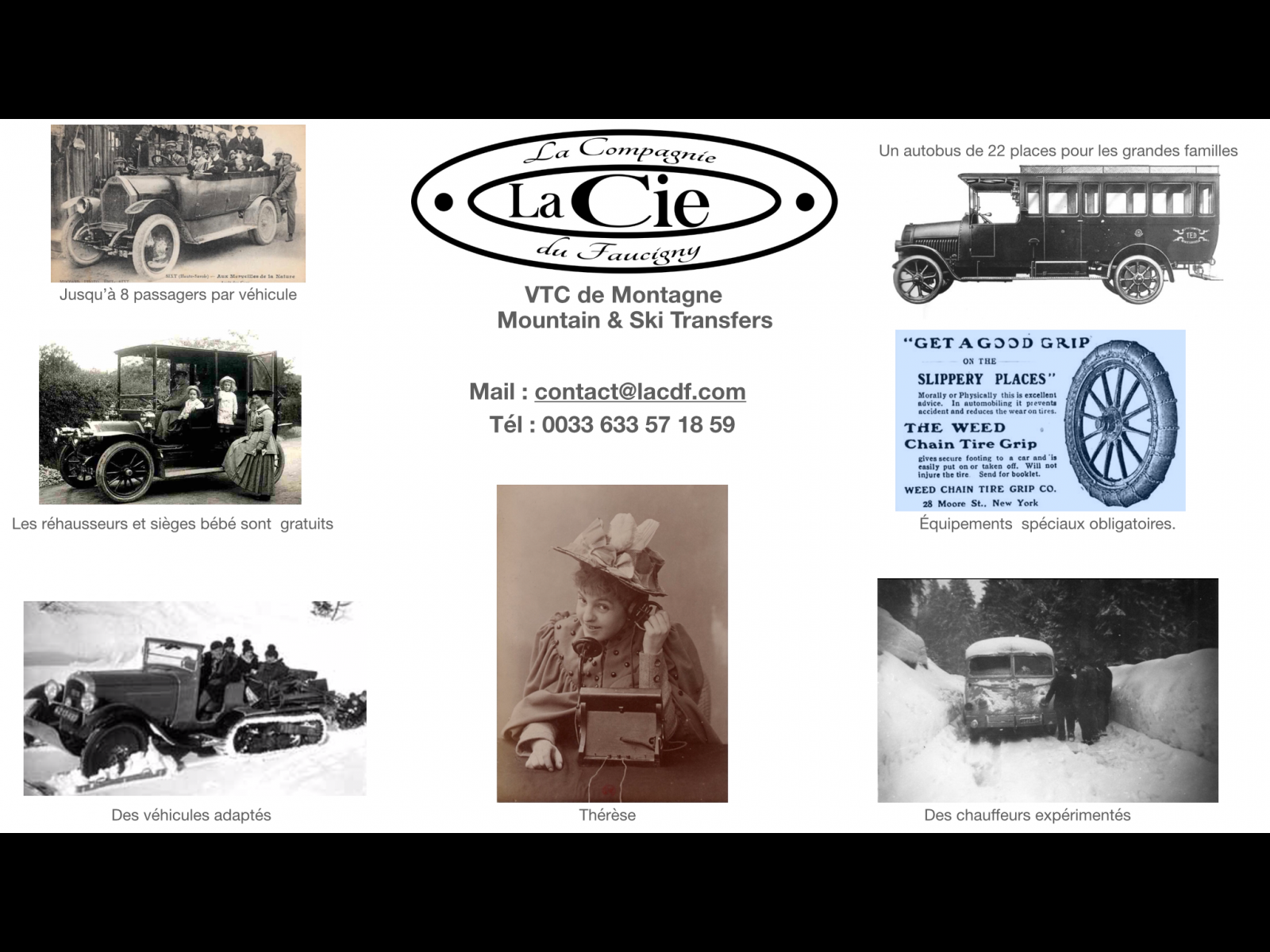 En plus des transports habituels depuis les gares et aéroports, nous assurons également les déplacements vers Annecy ou Chamonix.