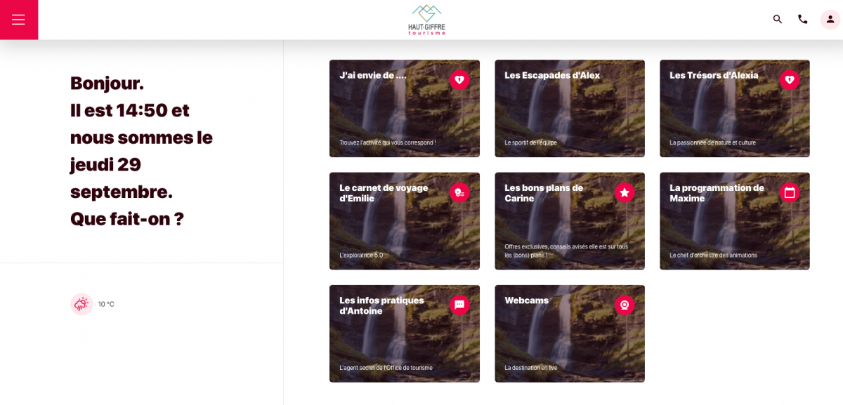 - La Webapplication My Haut Giffre : sa mise en ligne date de Février 2022. Elle est un outil a destination des vacanciers en présentielle. Seuls les activités, commerces de bouche et restaurants y figurent avec une information d’ouverture en temps rééls. Elle est alimentée par la base de données Apidae.